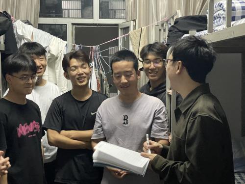 在新生宿舍,老师们询问学生军训生活情况,鼓励他们强健体魄,磨练意志,为即将开启的人生新篇章积蓄充足的能量。同时,嘱咐同学们相互之间勤沟通,多交流,互敬互助,建立良好的同窗情;对于来自南方的同学们,叮嘱他们关注气候变化,让自己尽快适应北方的生活习惯,尽快适应大学的生活节奏。