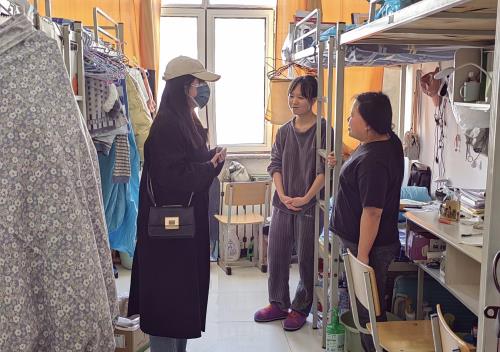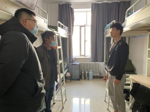 3月17日下午,工学院全体辅导员分两队前往北区、新区学生宿舍,看望在校学生。