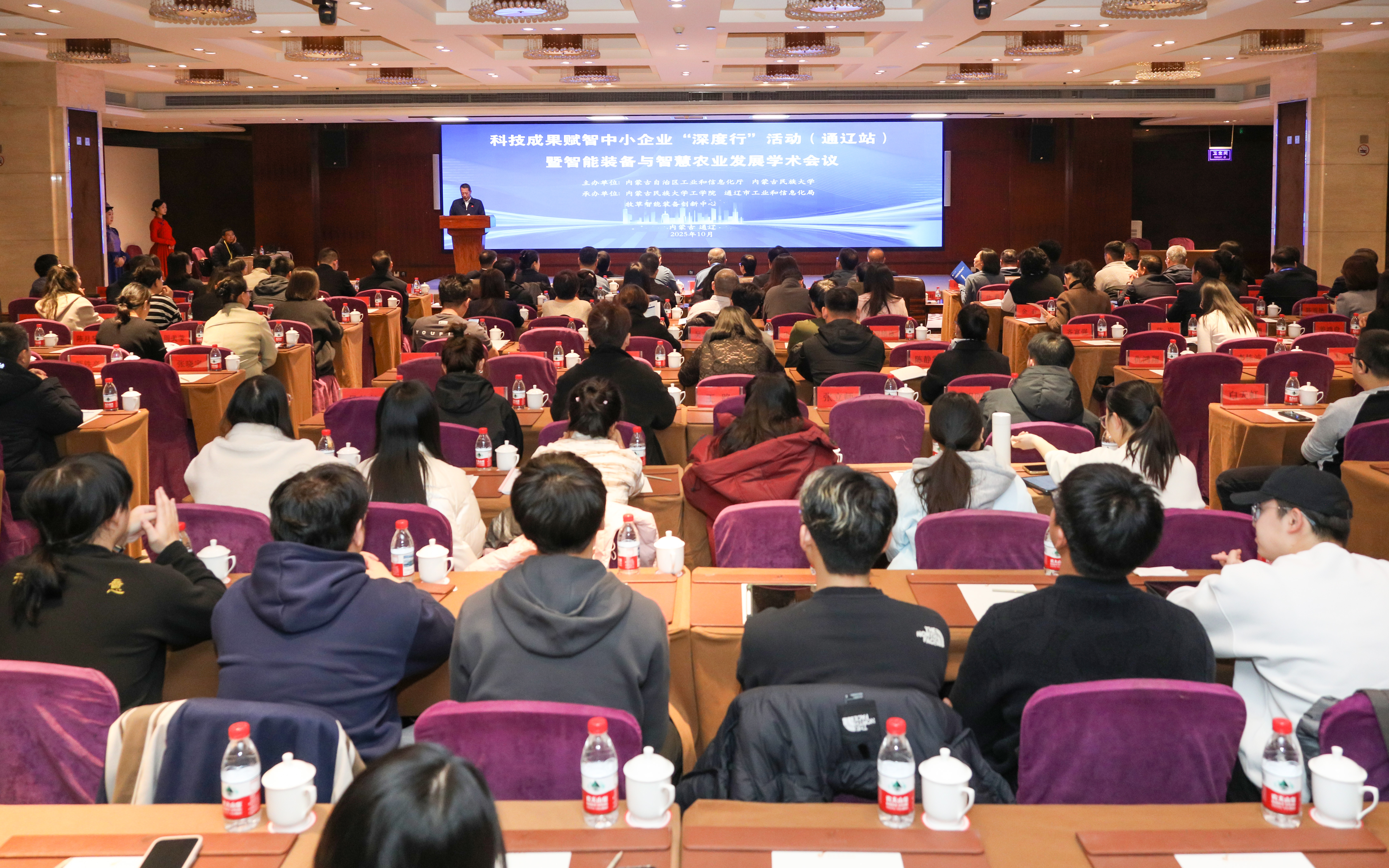 10月30日,科技成果赋智中小企业“深度行”活动(通辽站)暨内蒙古民族大学智能装备与智慧农业发展学术会议在通辽市成功举办。会议由国家工业和信息化部指导,内蒙古自治区工业和信息化厅与内蒙古民族大学共同主办,内蒙古民族大学工学院牵头,联合通辽市工业和信息化局、牧草智能装备创新中心承办。工业和信息化部科技司一级巡视员(正局级)范斌出席活动并讲话,校党委书记赵东海、通辽市人民政府副市长白立柱、自治区工业和信息化厅副厅长胡瑞芬、先后为活动致辞,校党委委员、副校长杨恒山主持启动仪式。工业和信息化部科技司、自治区工业和信息化厅、各盟市及通辽市各旗县区工业和信息化局有关负责同志,区内外高等院校、科研院所的专家学者,智能装备、农牧机械、智慧农业技术领域优秀企业、我院师生代表等170余人参加活动。