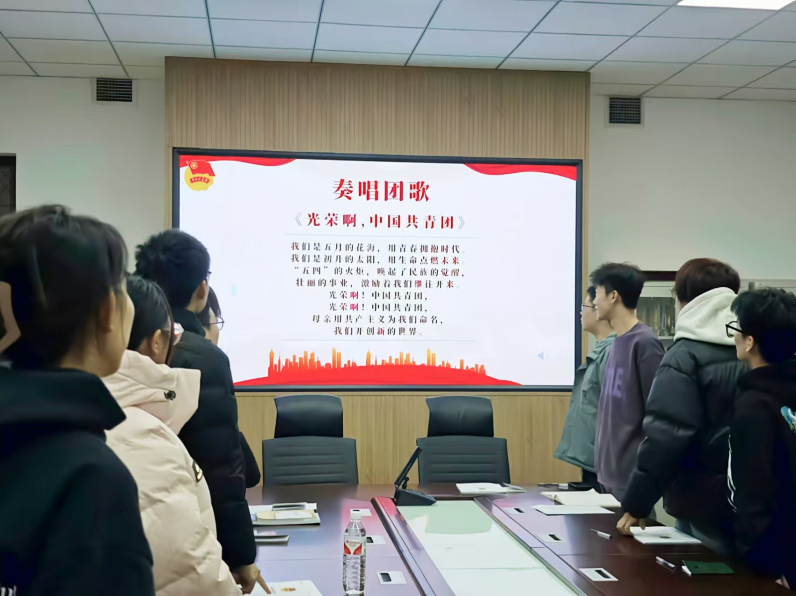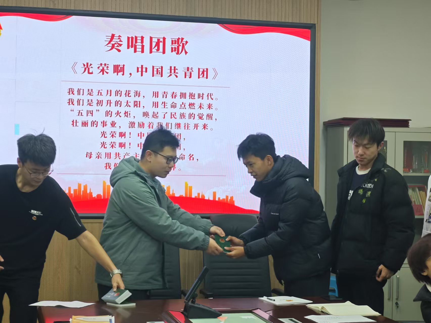 仪式在庄严的国歌声中拉开序幕,全体师生肃立,向国旗行注目礼。随后,在宣传委员贺宏的带领下新团员们面向团旗,紧握右拳,庄严宣誓。宣誓声在会议室回荡,表达了新团员们坚定的信念和决心。随后优秀团员代表方卓为进行发言,他感谢学院领导和老师们的关怀与指导,并表示将继续努力学习,不断提高自身素质,为团组织争光添彩。团总支副书记张晓明、张明昊向新团员们颁发了团员证和团徽,这一刻起,他们正式成为了中国共产主义青年团的一员。
